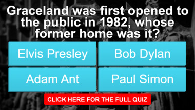 Look forward to questions like "Graceland was first opened to the public in 1982, whose former home was it?" and "Which of these men is not a classical composer?"