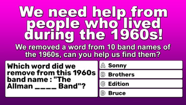 Quiz : We removed a word from famous 60s band names