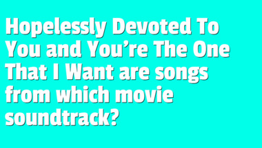 In this fun Movie quiz we're going to ask questions like "Which actor played Indiana Jones in Raiders of the Lost Ark?" and "Hopelessly Devoted To You and You're The One That I Want are songs from which movie s..".