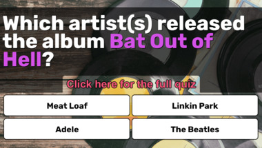 In this fun trivia quiz we're going to ask questions like "Which artist(s) released the album "Bat Out of Hell"?" and "Which artist(s) released the album "Bad"?".