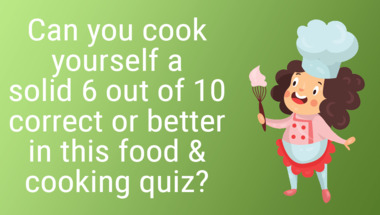 6/10 is what people on average are scoring in this trivia quiz so far. Are you ready to answer questions like "What is a common component in many Italian dishes?" and "Which vegetable is used to make sauerkraut?"