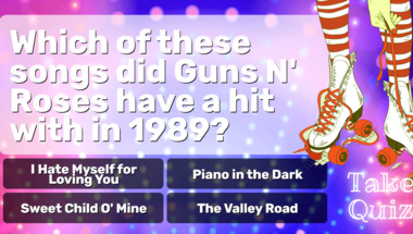 5/10 is the score to beat in this 1980s Hits quiz to put yourself over the average quiz taker. But you're probably going to be able to answer questions "Which of these songs did Guns N' Roses have a hit with in 1989?" and "One of the most popular hits in 1983 was this song performed by Willie Nelson" easy!