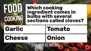 6/10 is what people on average are scoring in this trivia quiz so far. Are you ready to answer questions like "Which cooking ingredient comes in bulbs with several sections called cloves?" and "What word means a sauce made from juices from cooked meat?"