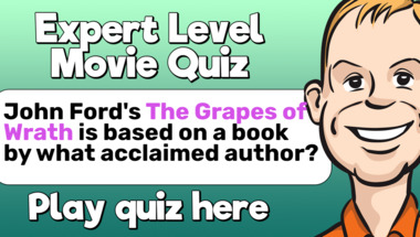 In this fun trivia quiz we're going to ask questions like "John Ford's "The Grapes of Wrath" is based on a book by what acclaimed author?" and "The film "The Monuments Men" takes place during which war?".