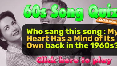 If you can answer "Who sang this song : "My Heart Has a Mind of Its Own" back in the 1960s?" and maybe even "Who sang this song : "Born to Be Wild" back in the 1960s?" there is a good chance that you're going to beat the average score of 5/10 in this trivia quiz