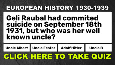 6/10 is the score to beat in this trivia quiz to put yourself over the average quiz taker. But you're probably going to be able to answer questions "Geli Raubal had commited suicide on September 18th 1931, but who was her well known u.." and "Wilhelm Groener was a defence Minister in which country as 1930 began?" easy!