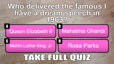 6/10 is what people on average are scoring in this trivia quiz so far. Are you ready to answer questions like "Who delivered the famous 'I have a dream' speech in 1963?" and "Persia was conquered by which Greek?"