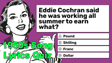 In this fun trivia quiz we're going to ask questions like "What comes after "But she was too young to fall in love" in the Sam Cooke song?" and "Eddie Cochran said he was working all summer to earn what?".