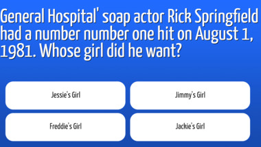 Look forward to questions like "Elvis Presley entertained us with which song back around 1964?" and "The Rolling Stones entertained us with which song back around 1968?"