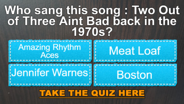 In this fun trivia quiz we're going to ask questions like "Who sang this song : "We've Only Just Begun" back in the 1970s?" and "Who sang this song : "Two Out of Three Ain't Bad" back in the 1970s?".