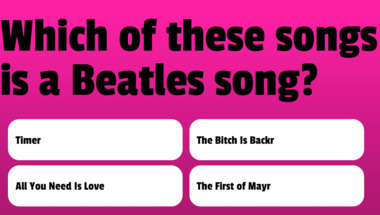 In this fun trivia quiz we're going to ask questions like "Which of these songs is a Beatles song?" and "Which of these songs is a Beatles song?".