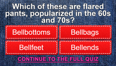 7/10 is what people on average are scoring in this trivia quiz so far. Are you ready to answer questions like "Who is responsible for cleaning the rooms of a hotel?" and "Which of these are flared pants, popularized in the 60s and 70s? "