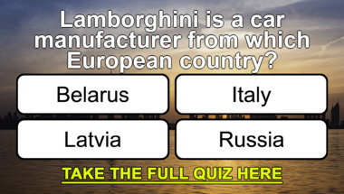7/10 is the score to beat in this trivia quiz to put yourself over the average quiz taker. But you're probably going to be able to answer questions "Lamborghini is a car manufacturer from which European country?" and "The first time a woman flew across the Atlantic was in 1928, when she was a passenger.." easy!