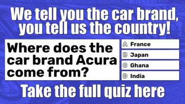 In this fun trivia quiz we're going to ask questions like "Where does the car brand Ferrari come from?" and "Where does the car brand Renault come from?".
