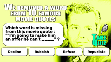 If you can answer "Which word is missing from this movie quote : ""I'm going to make him an offer he can.." and maybe even "Which word is missing from this movie quote : ""Toto, I've got a feeling we're not in.." there is a good chance that you're going to beat the average score of 7/10 in this trivia quiz