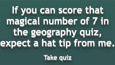 If you can answer "Which US state is nicknamed 'The Golden State'?" and maybe even "Which major city in the UK is represented by the postcode 'B'?" there is a good chance that you're going to beat the average score of 7/10 in this trivia quiz