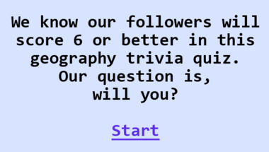 If you can answer "Which of these countries is the smallest by area?" and maybe even "Which geographical feature can contain meanders and rapids?" there is a good chance that you're going to beat the average score of 6/10 in this Geography quiz