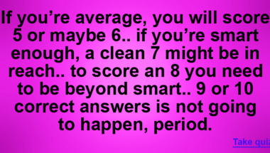 7/10 is the score to beat in this trivia quiz to put yourself over the average quiz taker. But you're probably going to be able to answer questions "A feeling of great happiness." and "Of these, which is the NBA team from New York?" easy!